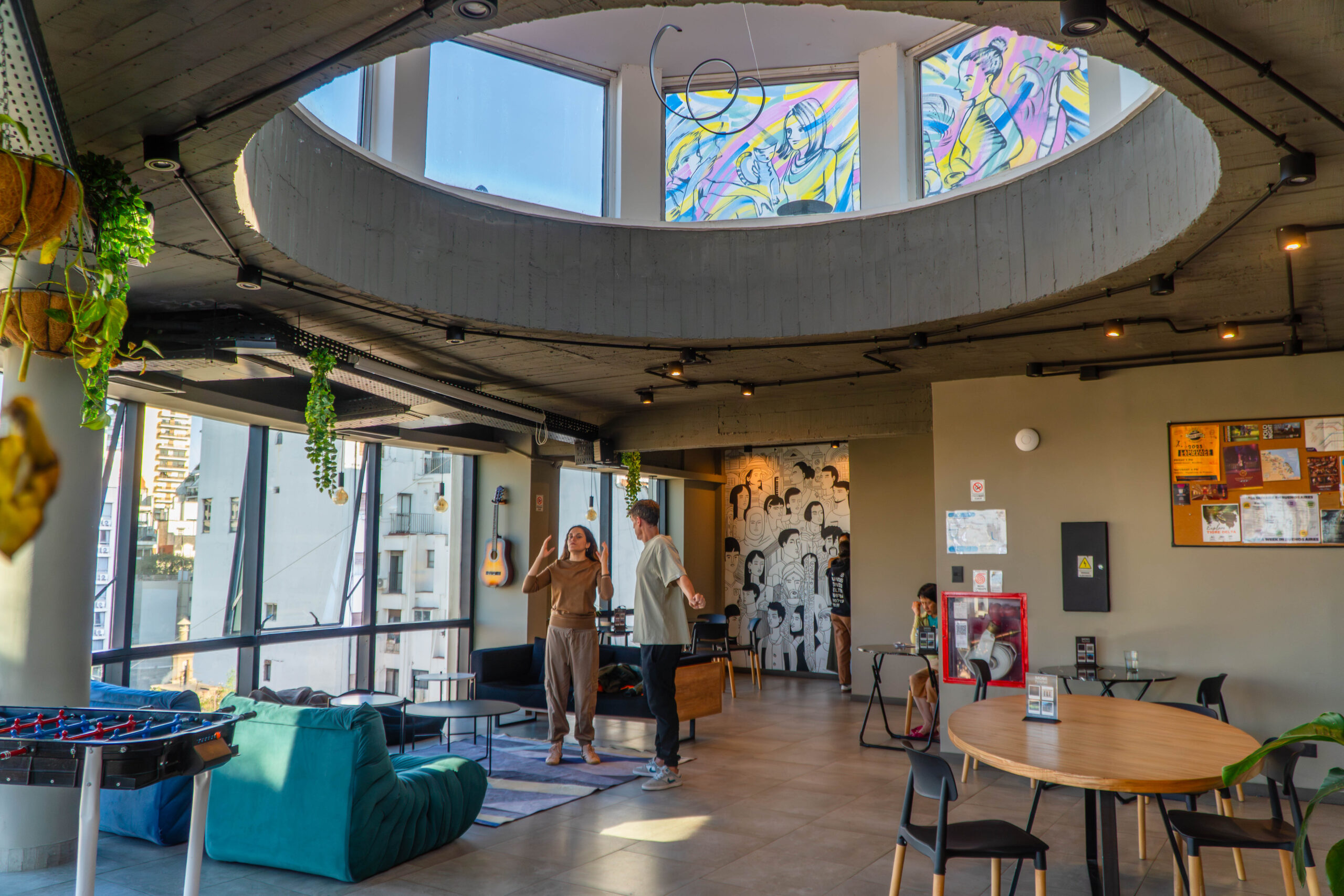 Contamos con habitaciones compartidas y privadas, wifi de alta velocidad, lockers con llave, cerraduras electrónicas en todas las habitaciones y un área de trabajo y esparcimiento en nuestro último piso con una vista inigualable.